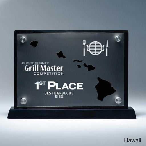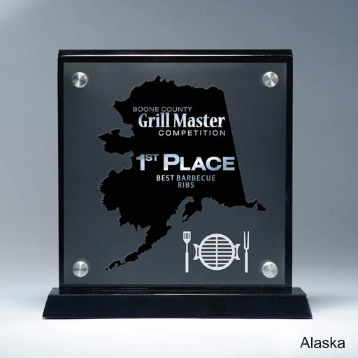 25M PrintingOr Special Stock Shape, Black 8 1/2" x 8 3/4" x 2" A Pacesetter Awards exclusive design. State silhouette award with frost finish effect. Laser cut...