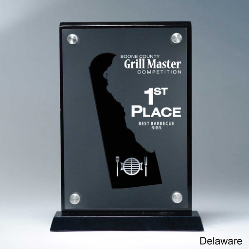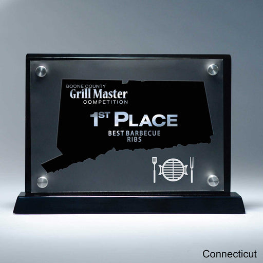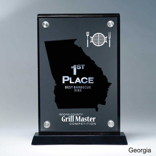 25M PrintingOr Special Stock Shape, Black 10 1/2" x 7 1/2" x 2" A Pacesetter Awards exclusive design. State silhouette award with frost finish effect. Laser cu...