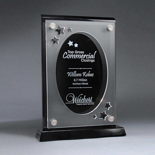 25M PrintingOr Special Stock Shape, Black 8 1/2" x 8 3/4" x 2" A Pacesetter Awards exclusive design. State silhouette award with frost finish effect. Laser cu...