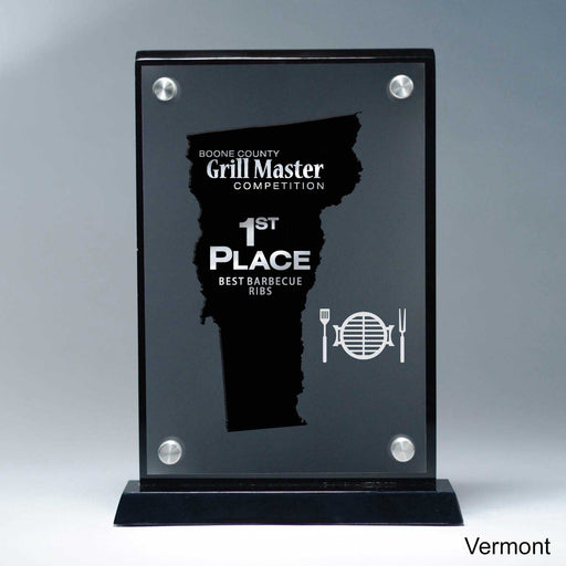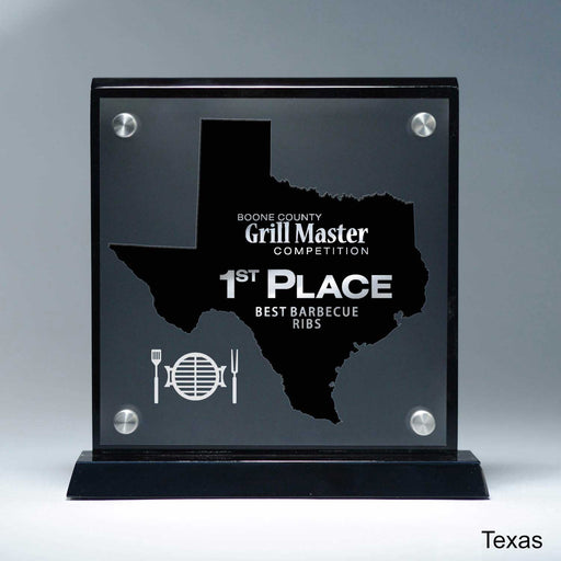 25M PrintingOr Special Stock Shape, Black 8 1/2" x 8 3/4" x 2" A Pacesetter Awards exclusive design. State silhouette award with frost finish effect. Laser cut...