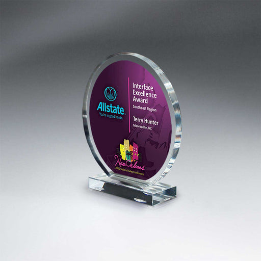 25M PrintingAvailable in 3 sizes5" x 5 1/8" x 1 1/2" Clear acrylic circle on clear base Laser Imprinted >>> Also available with Digi-Color (full-colo...