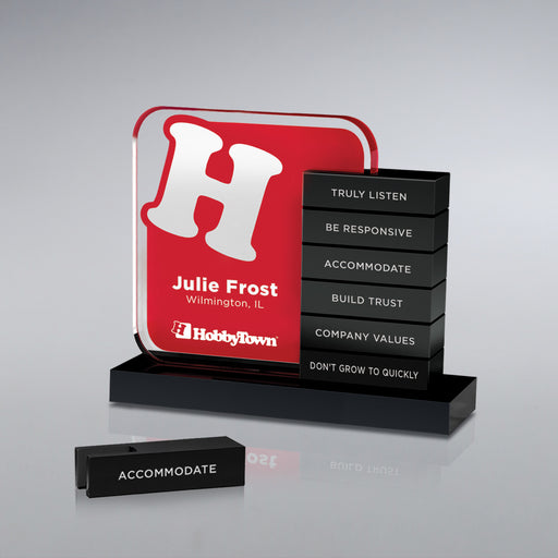 25M Printing7 3/4" x 7 3/4", 9 3/4" x 9 3/4" Digital pixel faux tile Lucite plaque with black center to showcase your graphics. Digi-Color Imprint; Free Person...