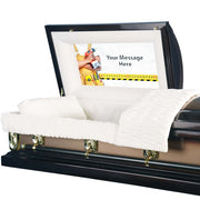 Made to order and to your specific size. This elegantly designed custom casket panels offers you a truly memorable backdrop for your loved ones photo special message. The cap panel is precisely sized and made especially for your casket. The cap panel is form fitting and easily placed into the casket. Personalized with your submitted photo and special text.
