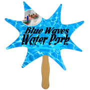 Put your logo in their hands with a two sided full color 20 pt. film laminated paper board fan. Design art to allow for a glued 8” birch wood handle on backside of fan. Fans are mini billboards & perfect for branding a custom message. Great for indoor or outdoor, sports, games, trade shows, fundraisers, churches, businesses, political & corporate events. Over 170 stock shapes to choose from or call to create a custom shape.
