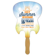 Put your logo in their hands with a two sided full color 20 pt. film laminated paper board fan. Design art to allow for a glued 8” birch wood handle on backside of fan. Fans are mini billboards & perfect for branding a custom message. Great for indoor or outdoor, sports, games, trade shows, fundraisers, churches, businesses, political & corporate events. Over 170 stock shapes to choose from or call to create a custom shape.