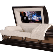 Made to order and to your specific size. This elegantly designed custom casket panels offers you a truly memorable backdrop for your loved ones photo special message. The cap panel is precisely sized and made especially for your casket. The cap panel is form fitting and easily placed into the casket. Personalized with your submitted photo and special text.