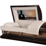 Made to order and to your specific size. This elegantly designed custom casket panels offers you a truly memorable backdrop for your loved ones photo special message. The cap panel is precisely sized and made especially for your casket. The cap panel is form fitting and easily placed into the casket. Personalized with your submitted photo and special text.