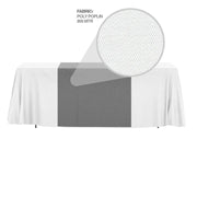 Move beyond the tablecloth! Brightly elevate your table at the next trade show easily and quickly with a premium custom table runner. Our branded table runner is a low-cost option to the more complex, expensive custom table covers and displays. Achieve maximum brand exposure but at half the cost and time. Plus there is no complex set-up or break down, allowing you to easily and quickly get your dress up any event table in minutes.