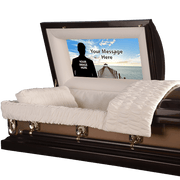 Made to order and to your specific size. This elegantly designed custom casket panels offers you a truly memorable backdrop for your loved ones photo special message. The cap panel is precisely sized and made especially for your casket. The cap panel is form fitting and easily placed into the casket. Personalized with your submitted photo and special text.