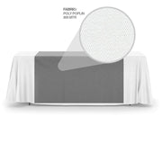 Move beyond the tablecloth! Brightly elevate your table at the next trade show easily and quickly with a premium custom table runner. Our branded table runner is a low-cost option to the more complex, expensive custom table covers and displays. Achieve maximum brand exposure but at half the cost and time. Plus there is no complex set-up or break down, allowing you to easily and quickly get your dress up any event table in minutes.