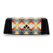 These eye-catching custom table runners are made of 300 denier polyester poplin, measure 60" x 69" and provide four sided coverage. And we can customize each table runner with full coverage, full color digital dye sublimation printing to achieve the brightest, most attractive designs. A custom table runner will make sure your brand is front and center at any event.