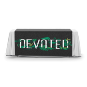 These eye-catching custom table runners are made of 300 denier polyester poplin, measure 72" x 87" and provide four sided coverage. And we can customize each table runner with full coverage, full color digital dye sublimation printing to achieve the brightest, most attractive designs. A custom table runner will make sure your brand is front and center at any event.