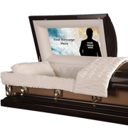 Made to order and to your specific size.  This elegantly designed custom casket panels offers you a truly memorable backdrop for your loved ones photo special message.  The cap panel is precisely sized and made especially for your casket.  The cap panel is form fitting and easily placed into the casket.  Personalized with your submitted photo and special text.